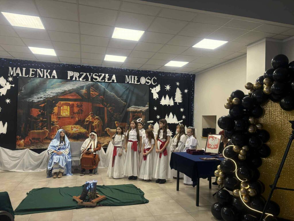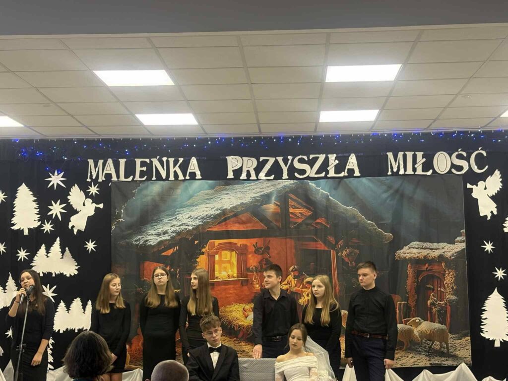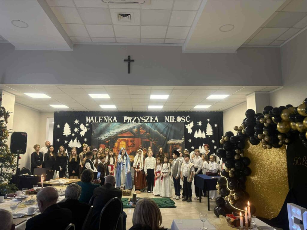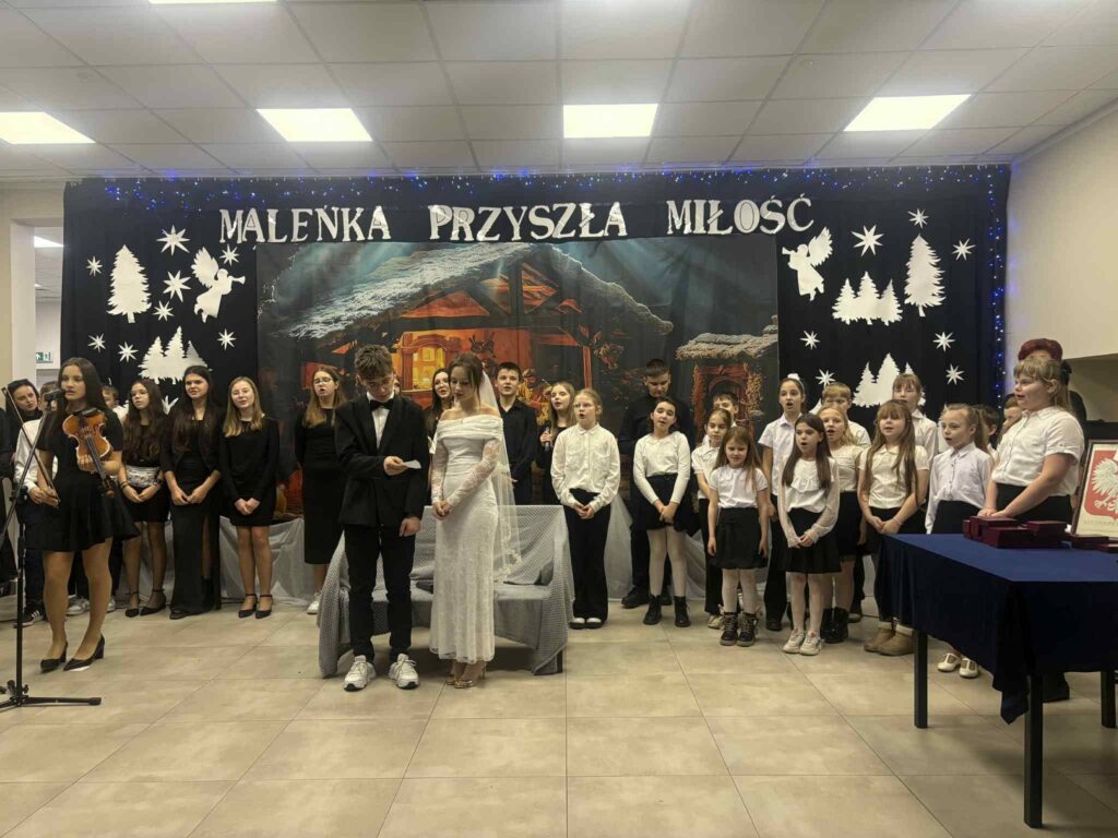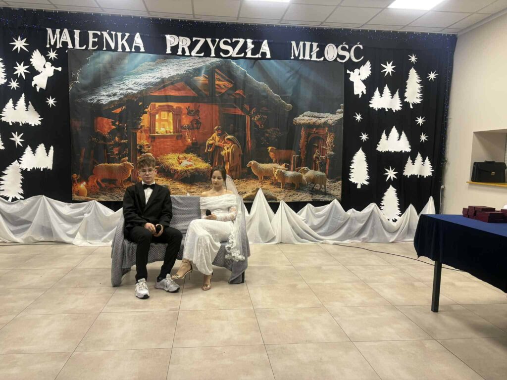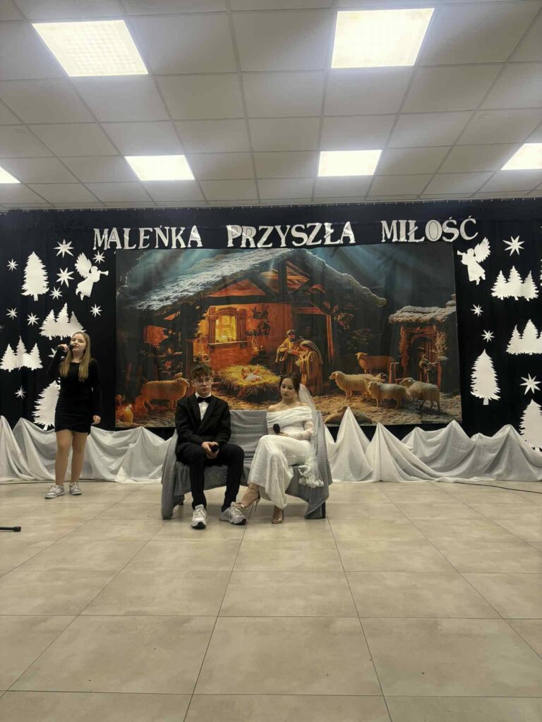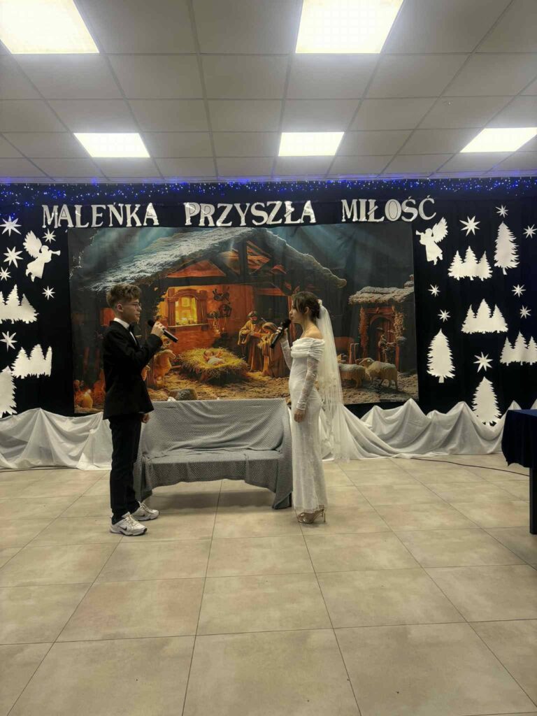 Podczas wydarzenia nie zabrakło wzruszających Jasełek, które w piękny sposób nawiązywały do wartości miłości, wierności i wzajemnego szacunku – fundamentów długoletniego małżeństwa. Uczniowie zaprezentowali się wspaniale, a ich zaangażowanie i talent zostały nagrodzone gromkimi brawami ![]()