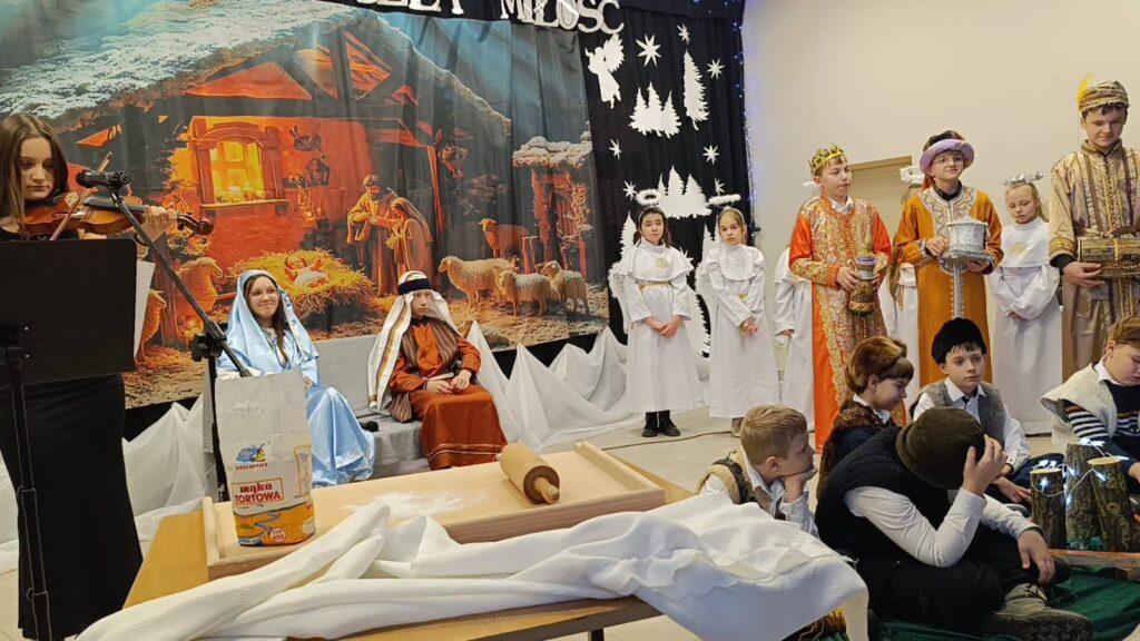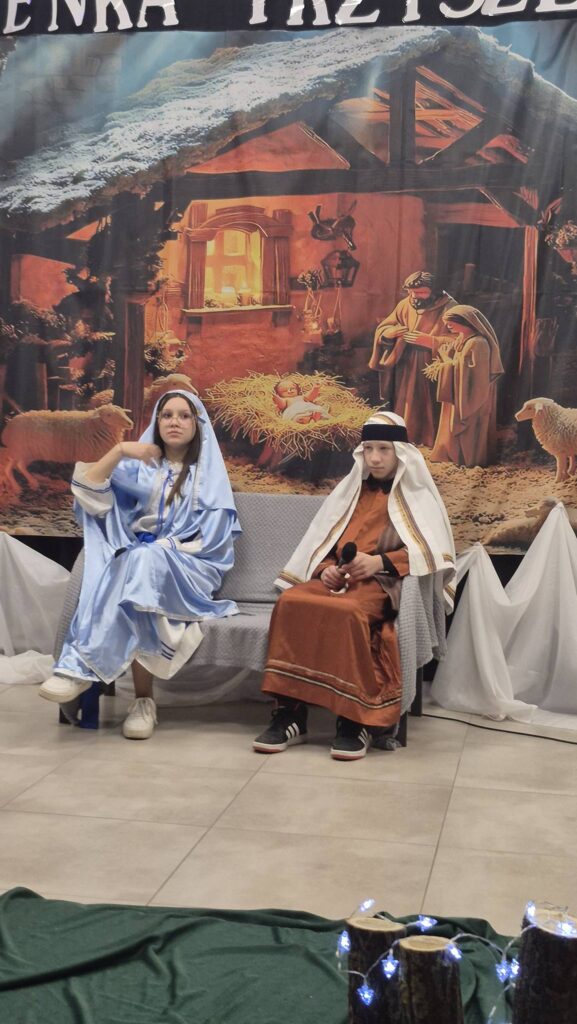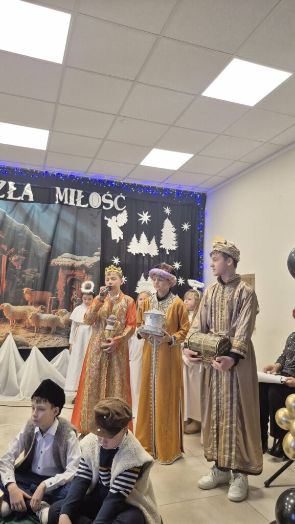 Dnia 19 grudnia 2025t. w naszej szkole odbyły się Jasełka szkolne, przygotowane przez uczniów i zaprezentowane całej społeczności szkolnej. Przedstawienie wprowadziło wszystkich w świąteczny nastrój i przypomniało istotę Bożego Narodzenia. Młodzi artyści z wielkim zaangażowaniem odegrali swoje role, a piękna scenografia, stroje oraz oprawa muzyczna dopełniły całości. Występ został nagrodzony gromkimi brawami, a wspólne przeżywanie tego wydarzenia stworzyło atmosferę radości, wzruszenia i jedności. Jasełka były wyjątkowym momentem integrującym społeczność szkolną i na długo pozostaną w naszej pamięci.