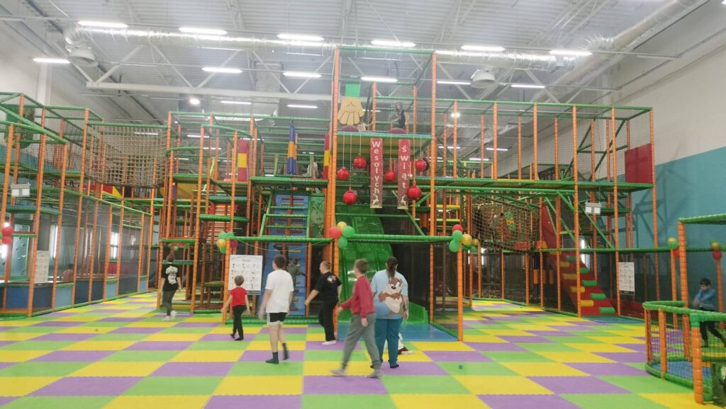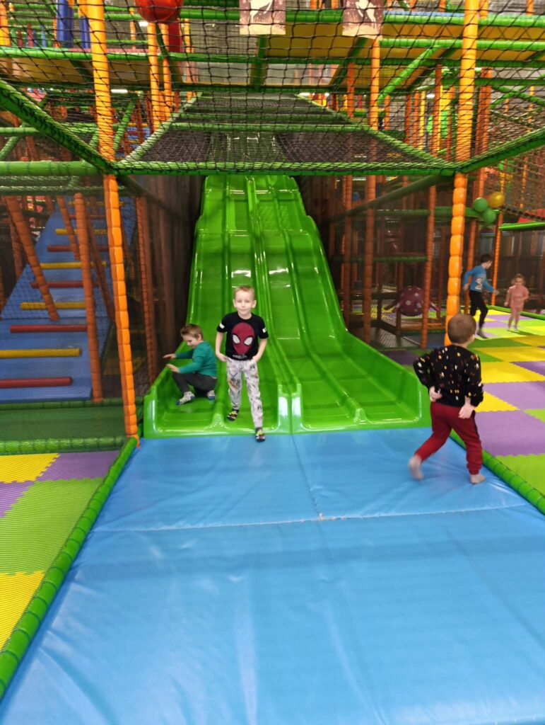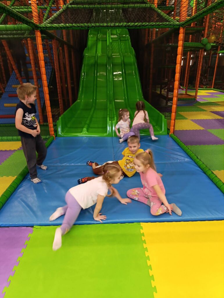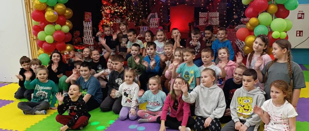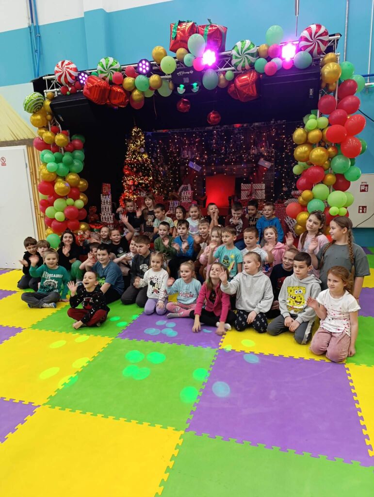 Pierwszym punktem programu była wizyta w kinie gdzie dzieci obejrzały bajkę „Święta z Astrid Lindgren”, która dostarczyła im wielu emocji i stała się doskonałą okazją do rozwijania wrażliwości oraz kulturalnego odbioru sztuki filmowej. Kolejną atrakcją była sala zabaw, gdzie na dzieci czekały liczne atrakcje ruchowe. Pobyt w sali zabaw sprzyjał integracji, współpracy i aktywnemu spędzaniu czasu.