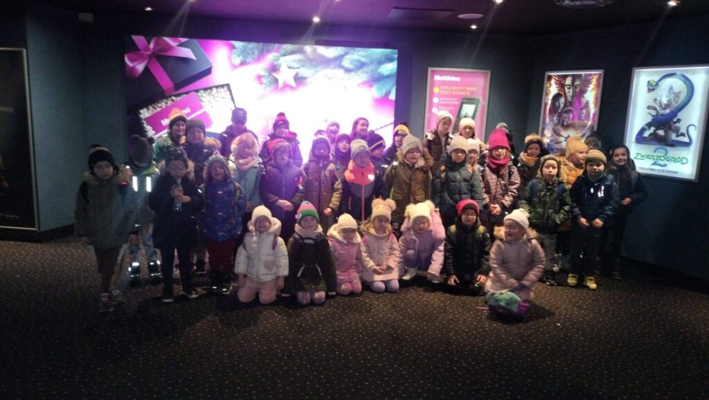 W dniu 09.12.2025r. dzieci z oddziału przedszkolnego oraz uczniowie klas I- III wzięli udział w wycieczce integracyjno-edukacyjnej do kina i sali zabaw.