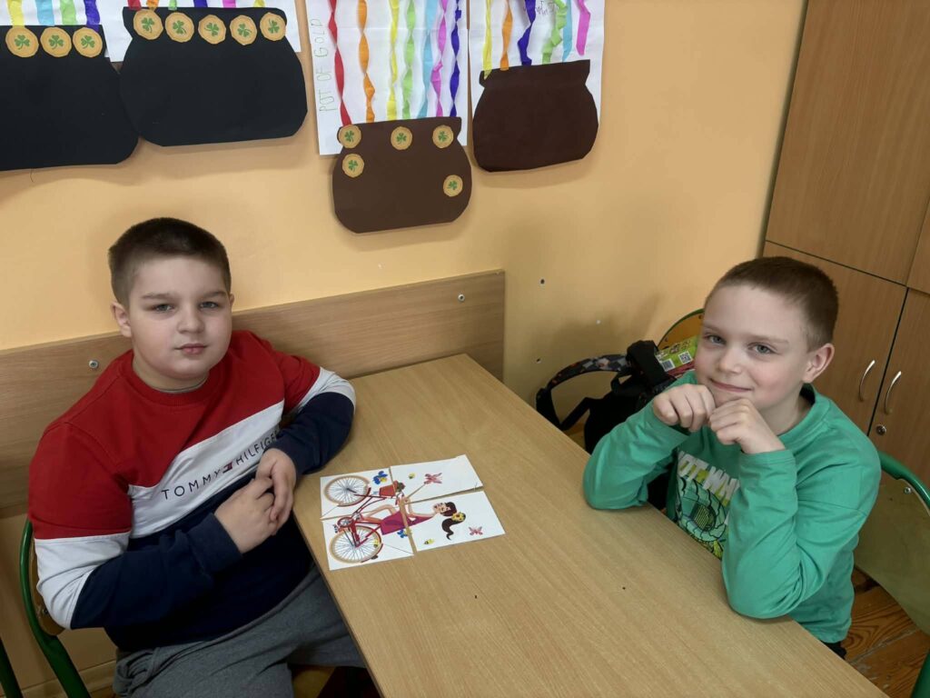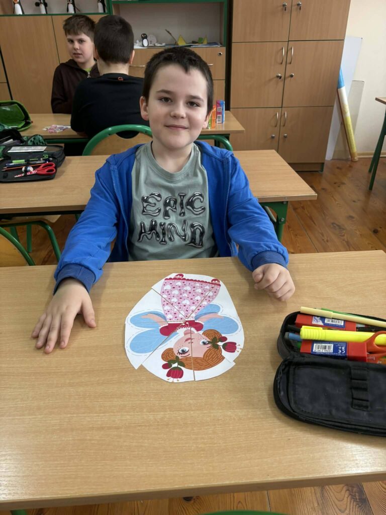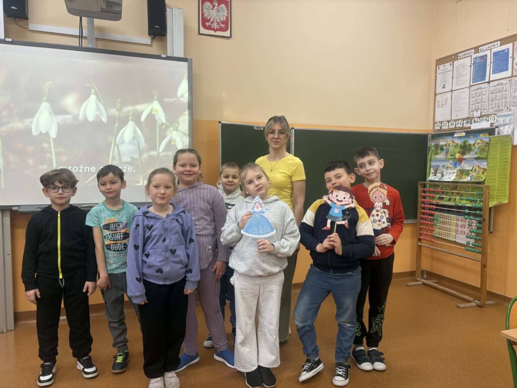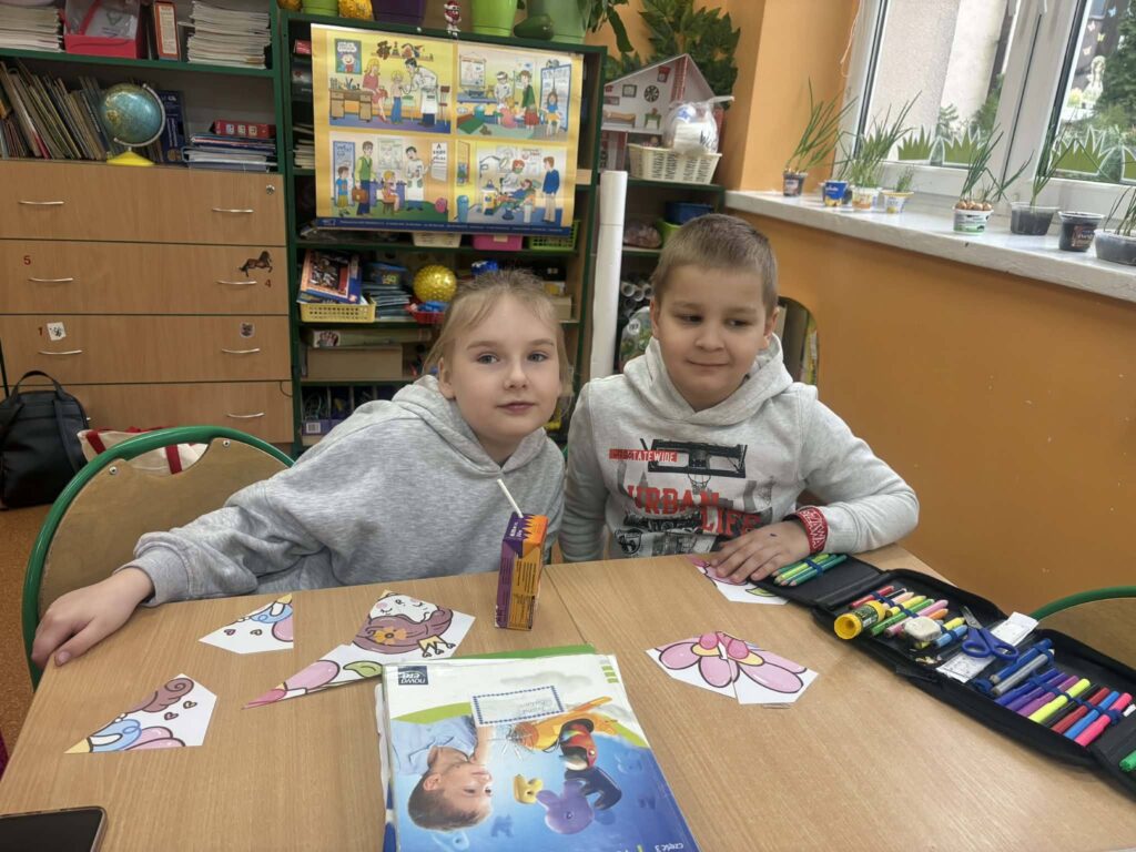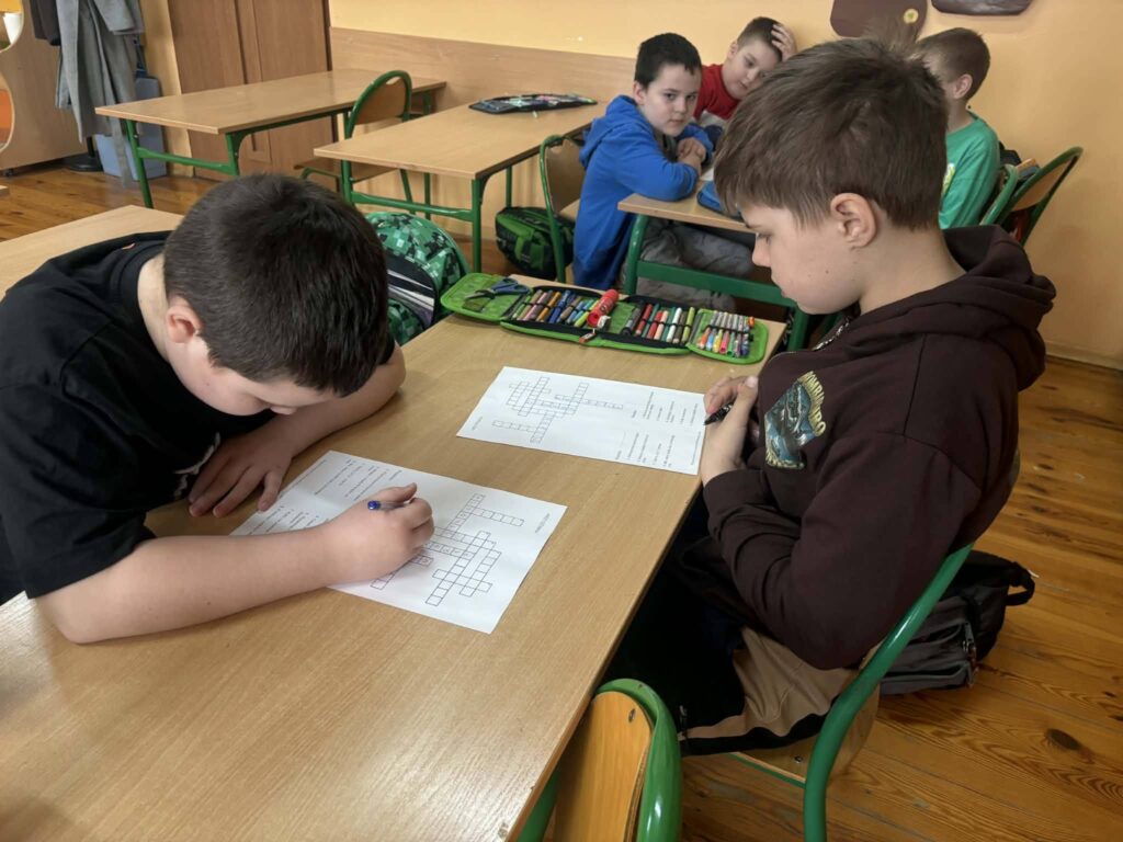 Podczas zajęć nie zabrakło atrakcji-uczniowie rozwiązywali zagadki, układali puzzle, kolorowali, tworzyli słowa z rozsypanki oraz z zaangażowaniem rozwiązywali krzyżówki. Wszystkim aktywnościom towarzyszyły radosne, wiosenne piosenki, które wprowadziły wszystkich w pogodny nastrój.