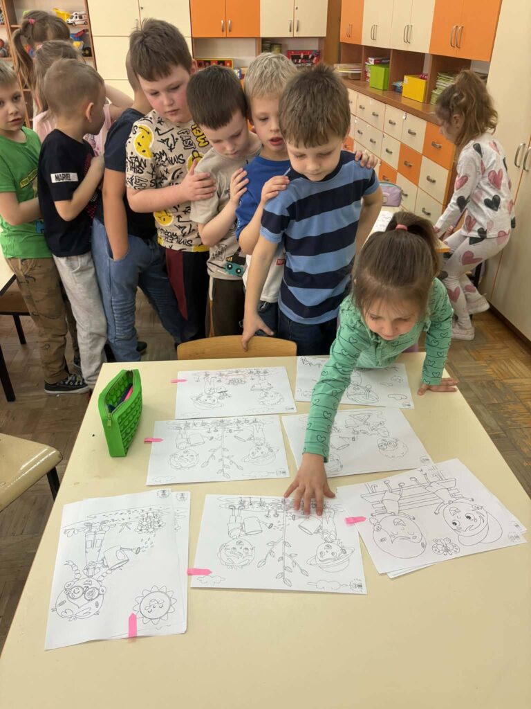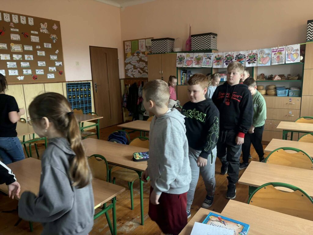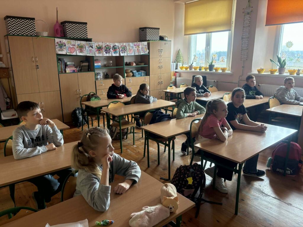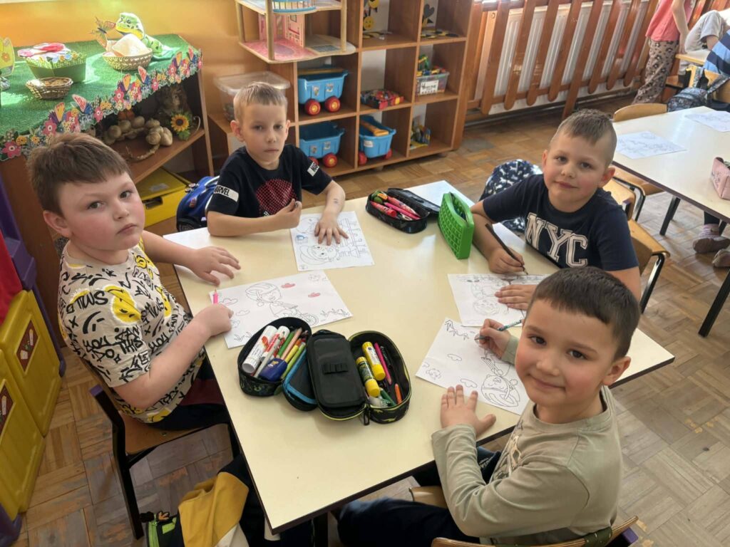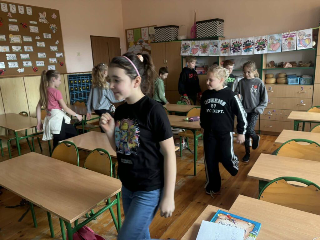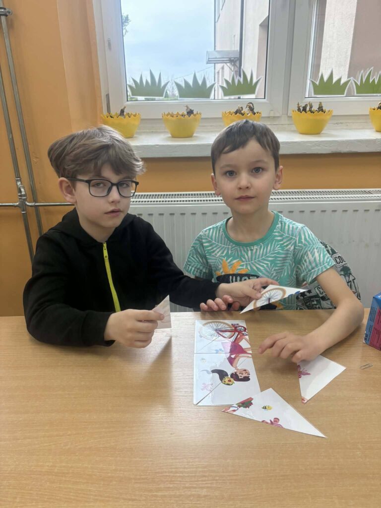 Podczas zajęć nie zabrakło atrakcji-uczniowie rozwiązywali zagadki, układali puzzle, kolorowali, tworzyli słowa z rozsypanki oraz z zaangażowaniem rozwiązywali krzyżówki. Wszystkim aktywnościom towarzyszyły radosne, wiosenne piosenki, które wprowadziły wszystkich w pogodny nastrój.